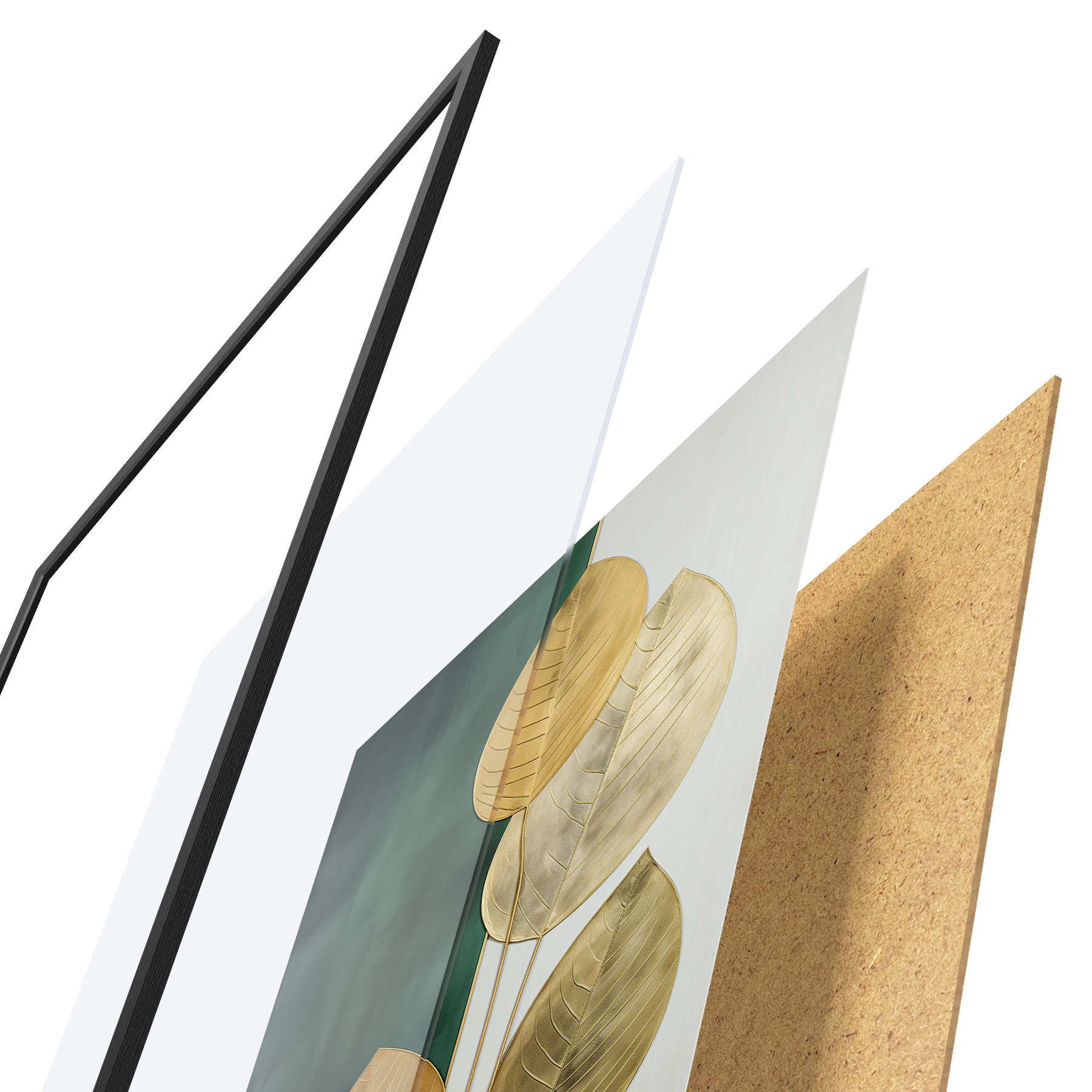 El póster consta de marco, plexiglás, imagen impresa y soporte de aglomerado. El póster puede colgarse inmediatamente en la pared gracias a los soportes de la parte posterior.