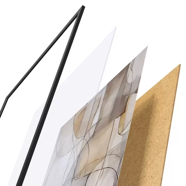 El póster consta de marco, plexiglás, imagen impresa y soporte de aglomerado. El póster puede colgarse inmediatamente en la pared gracias a los soportes de la parte posterior.