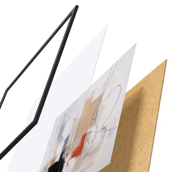 El póster consta de marco, plexiglás, imagen impresa y soporte de aglomerado. El póster puede colgarse inmediatamente en la pared gracias a los soportes de la parte posterior.