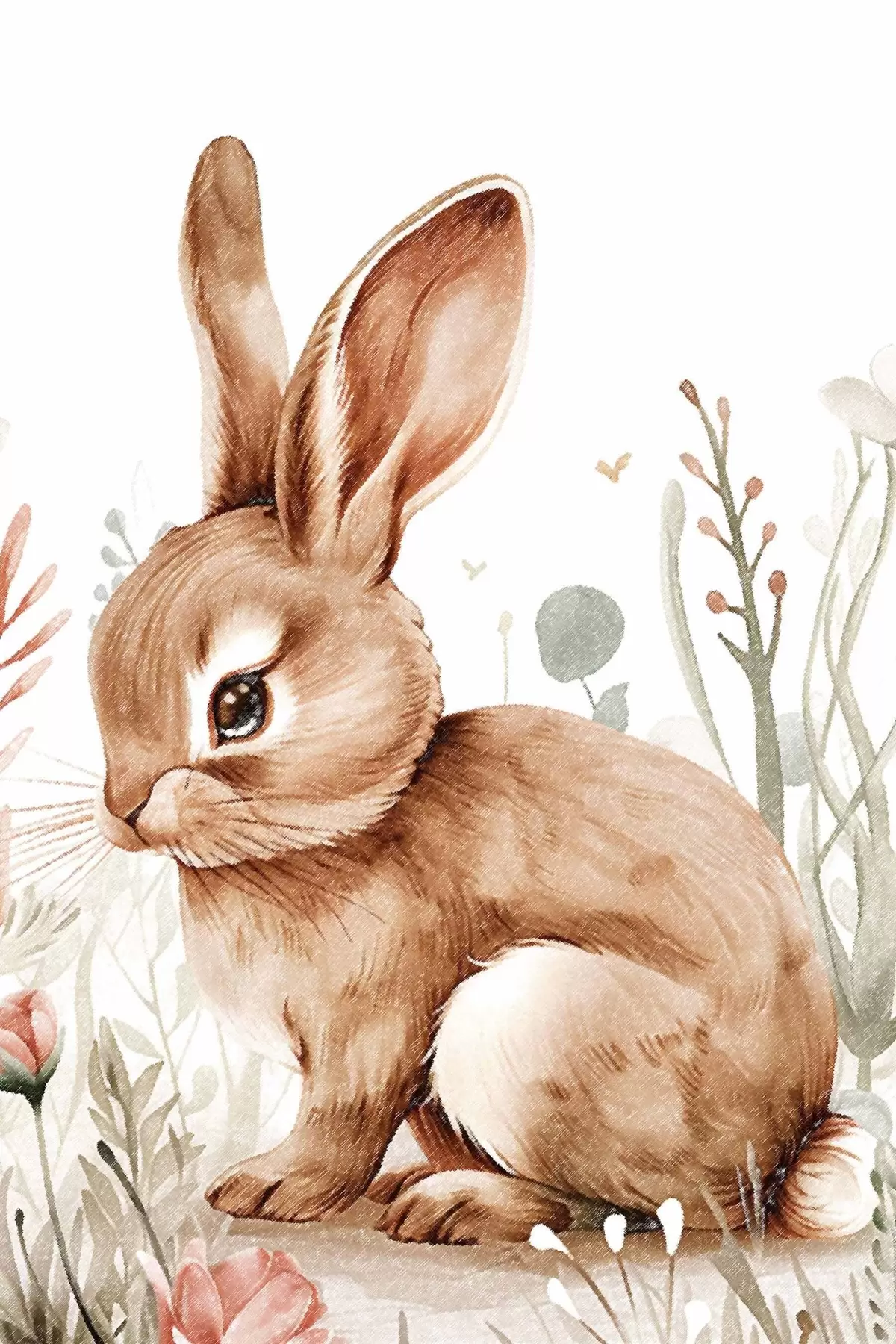 Poster Lindo conejito entre flores, efecto lápiz f47741