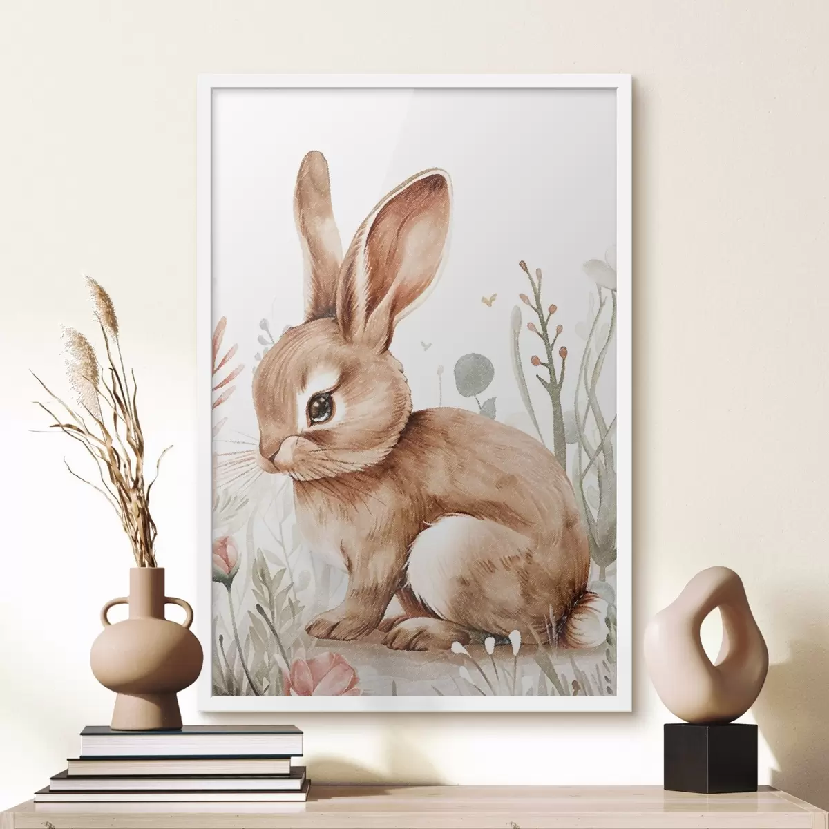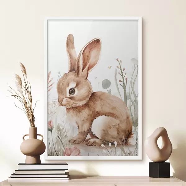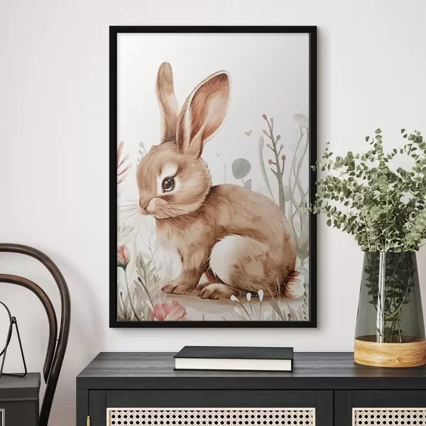 Poster Lindo conejito entre flores, efecto lápiz Nr f47741