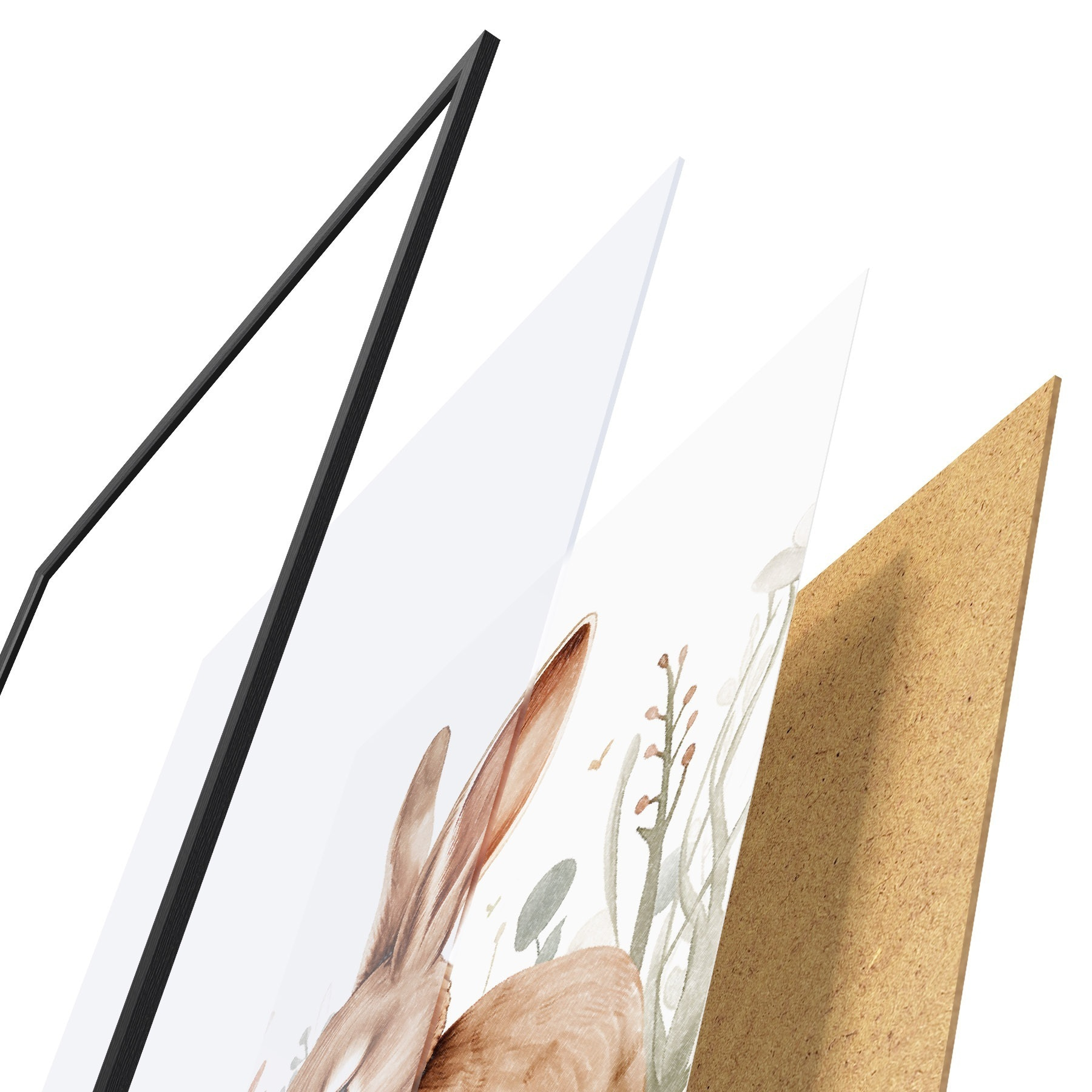 El póster consta de marco, plexiglás, imagen impresa y soporte de aglomerado. El póster puede colgarse inmediatamente en la pared gracias a los soportes de la parte posterior.