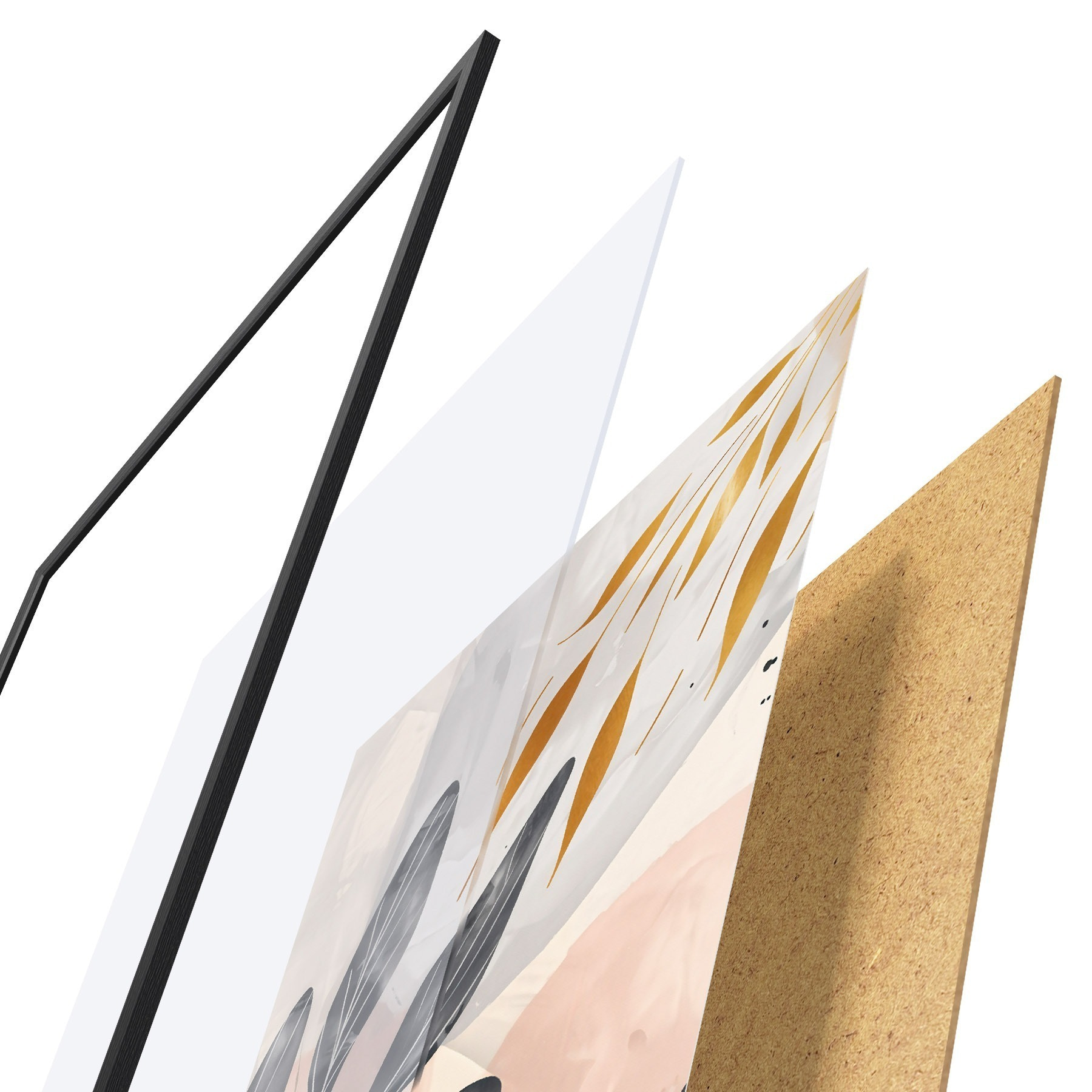 El póster consta de marco, plexiglás, imagen impresa y soporte de aglomerado. El póster puede colgarse inmediatamente en la pared gracias a los soportes de la parte posterior.