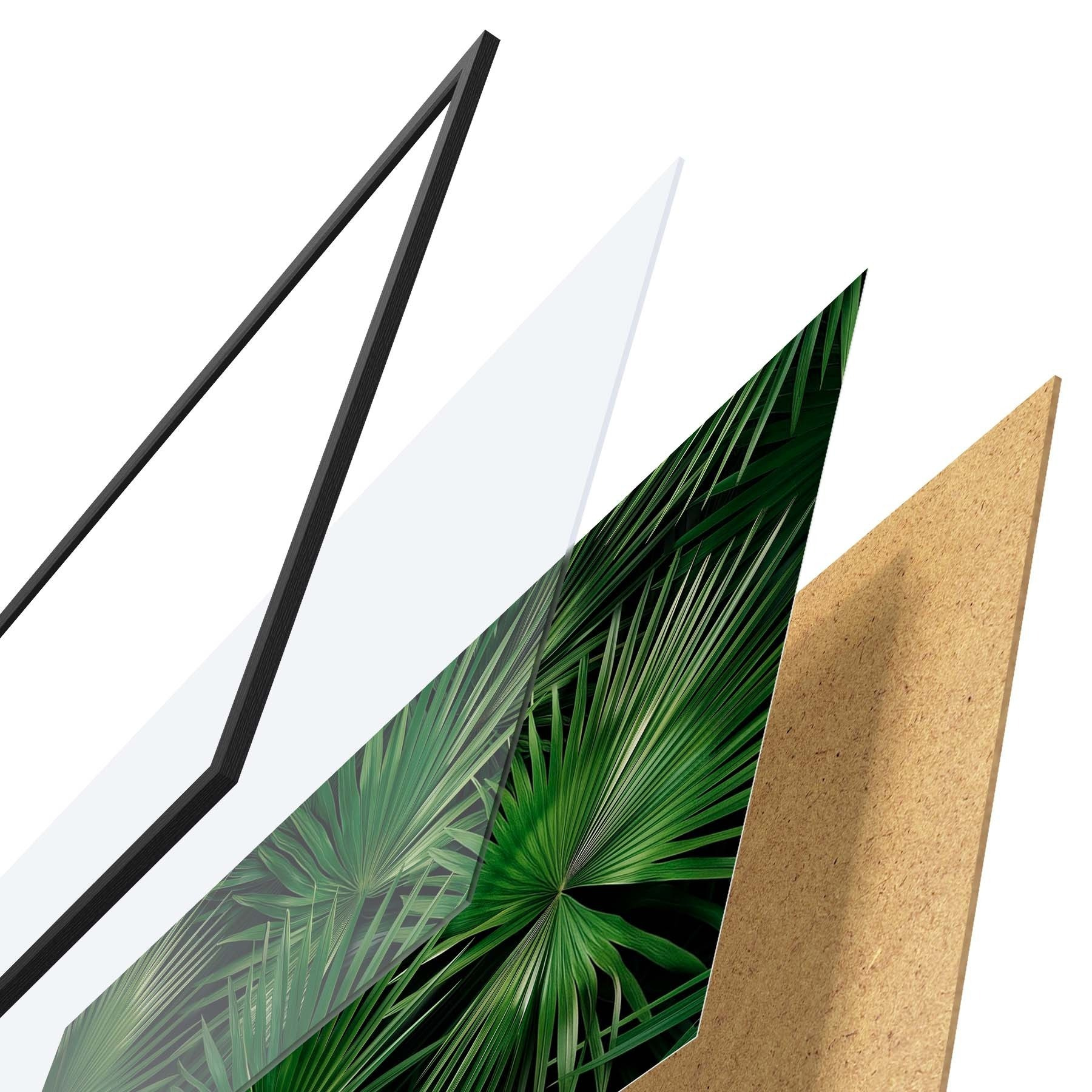 El póster consta de marco, plexiglás, imagen impresa y soporte de aglomerado. El póster puede colgarse inmediatamente en la pared gracias a los soportes de la parte posterior.