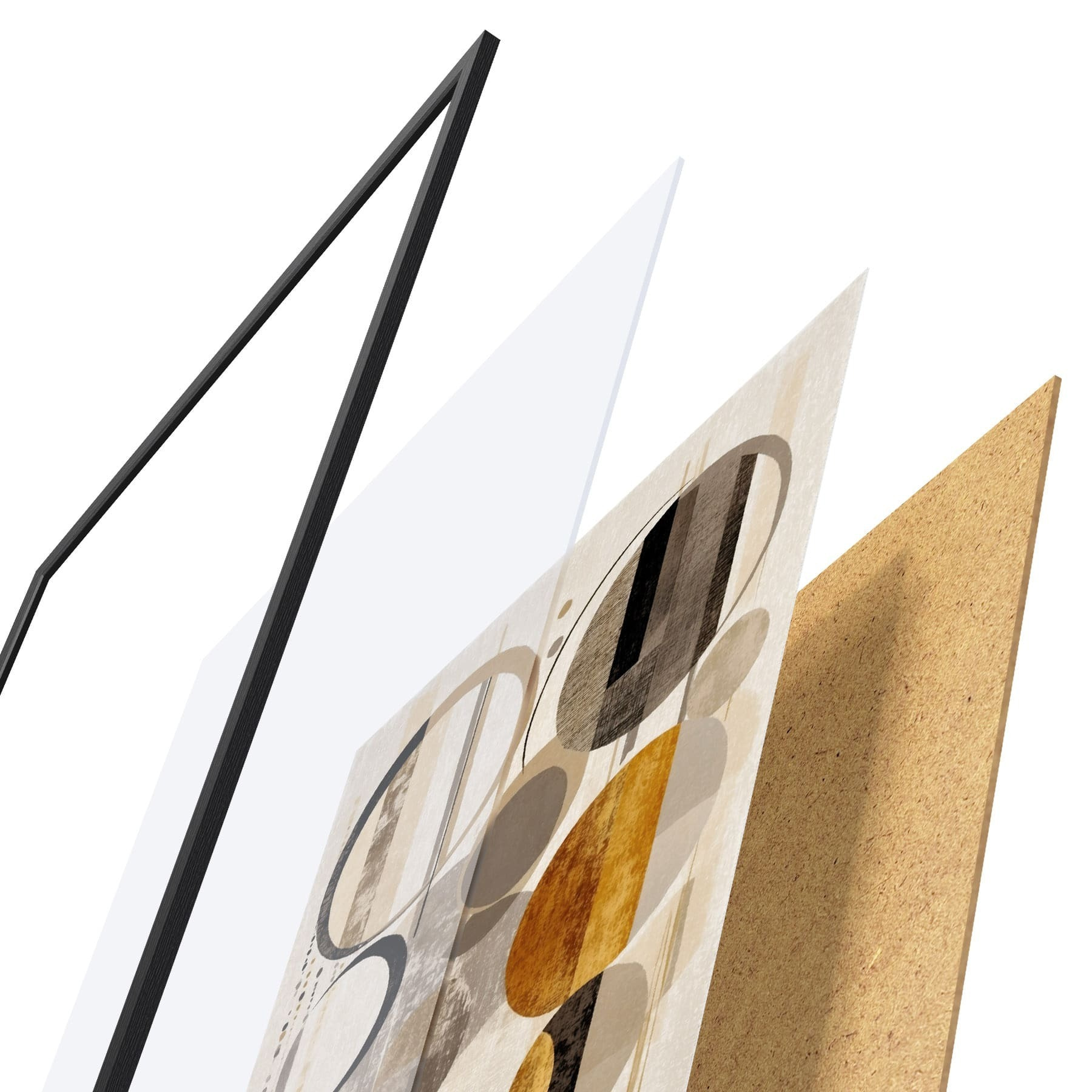 El póster consta de marco, plexiglás, imagen impresa y soporte de aglomerado. El póster puede colgarse inmediatamente en la pared gracias a los soportes de la parte posterior.