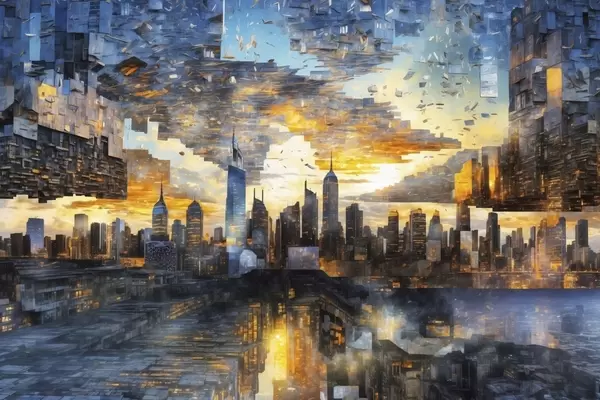 Poster Fantástico paisaje urbano con un cielo fragmentado Nr f47768