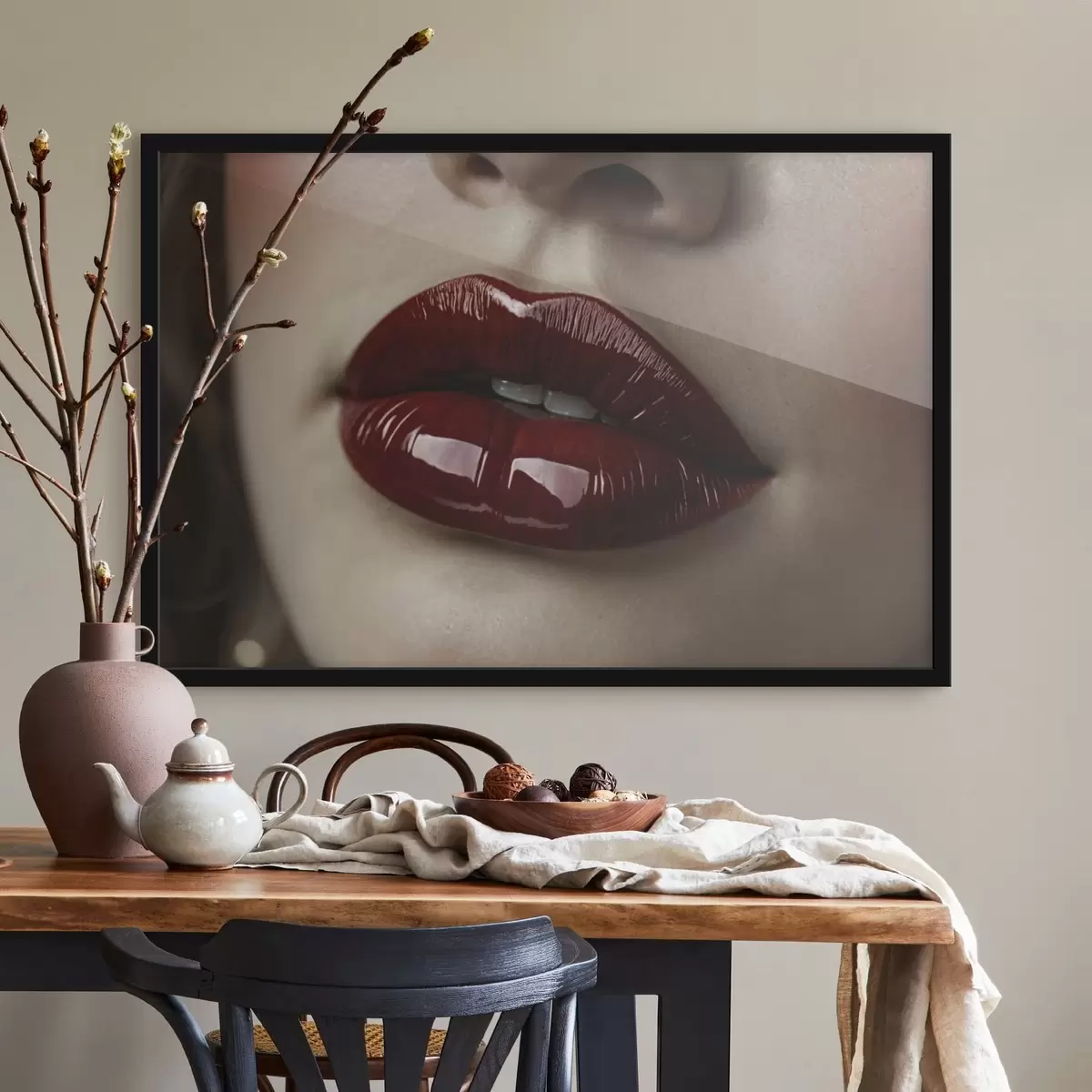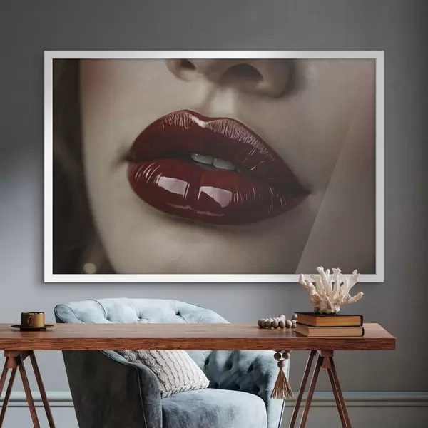 Poster Vista muy cercana de unos labios rojos brillantes. Nr f47772