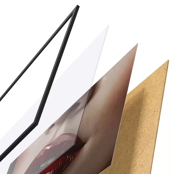 El póster consta de marco, plexiglás, imagen impresa y soporte de aglomerado. El póster puede colgarse inmediatamente en la pared gracias a los soportes de la parte posterior.
