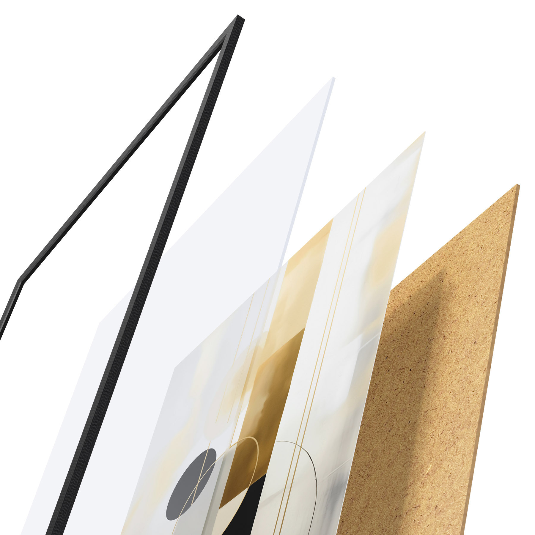 El póster consta de marco, plexiglás, imagen impresa y soporte de aglomerado. El póster puede colgarse inmediatamente en la pared gracias a los soportes de la parte posterior.