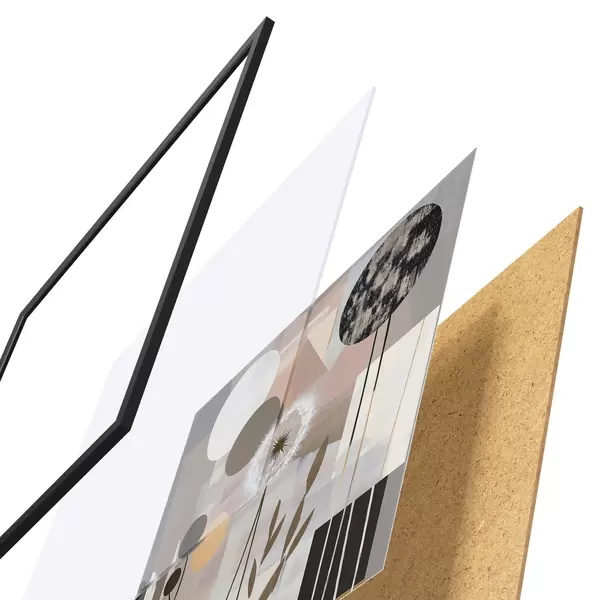 El póster consta de marco, plexiglás, imagen impresa y soporte de aglomerado. El póster puede colgarse inmediatamente en la pared gracias a los soportes de la parte posterior.