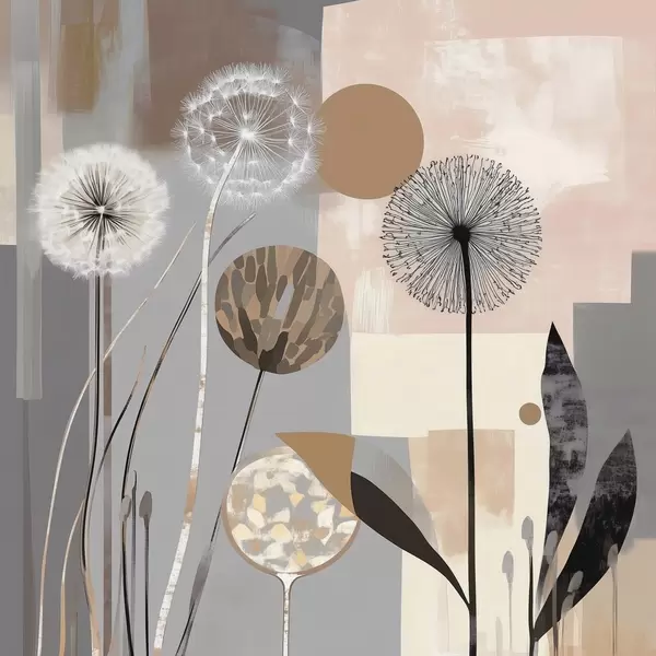 Poster Abstracción con dientes de león y plantas f47776