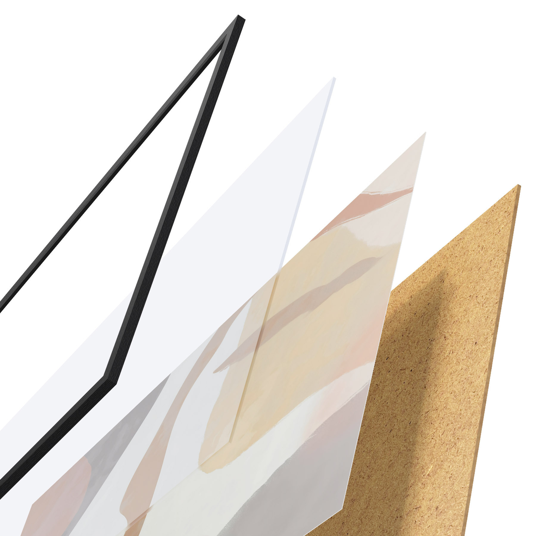 El póster consta de marco, plexiglás, imagen impresa y soporte de aglomerado. El póster puede colgarse inmediatamente en la pared gracias a los soportes de la parte posterior.