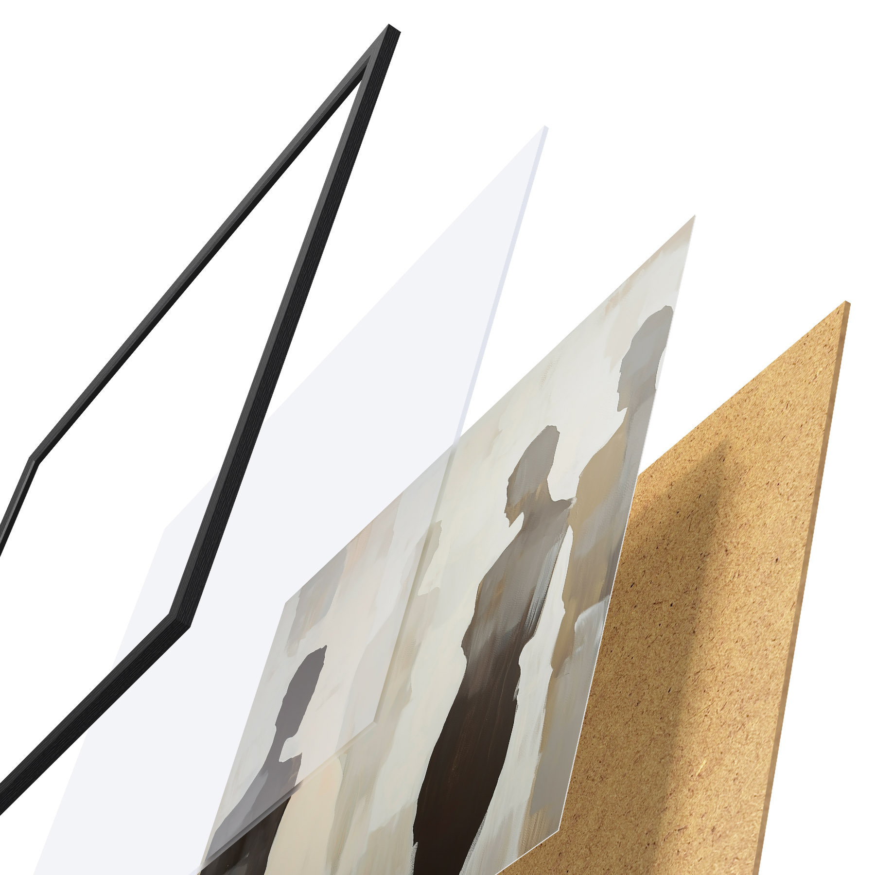 El póster consta de marco, plexiglás, imagen impresa y soporte de aglomerado. El póster puede colgarse inmediatamente en la pared gracias a los soportes de la parte posterior.