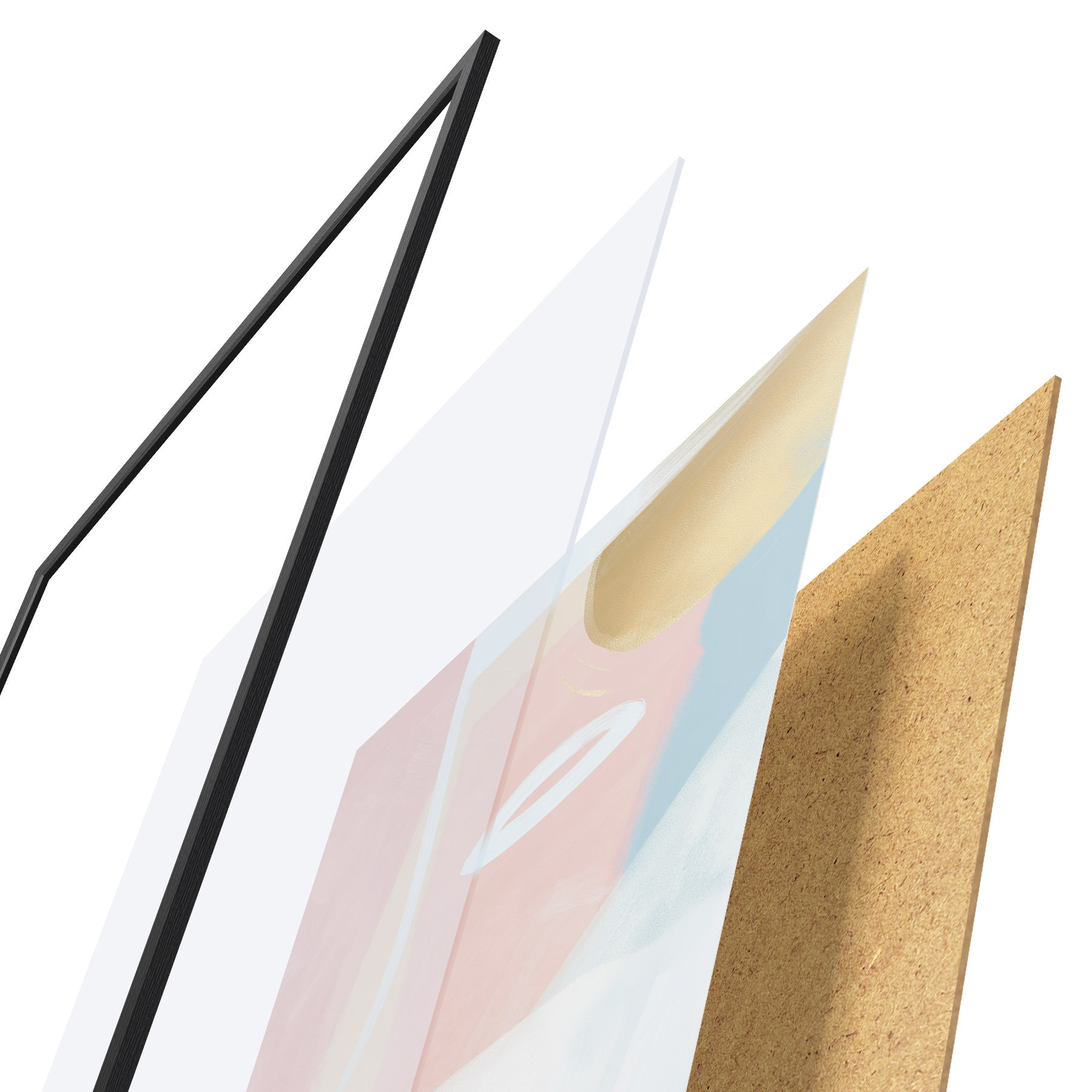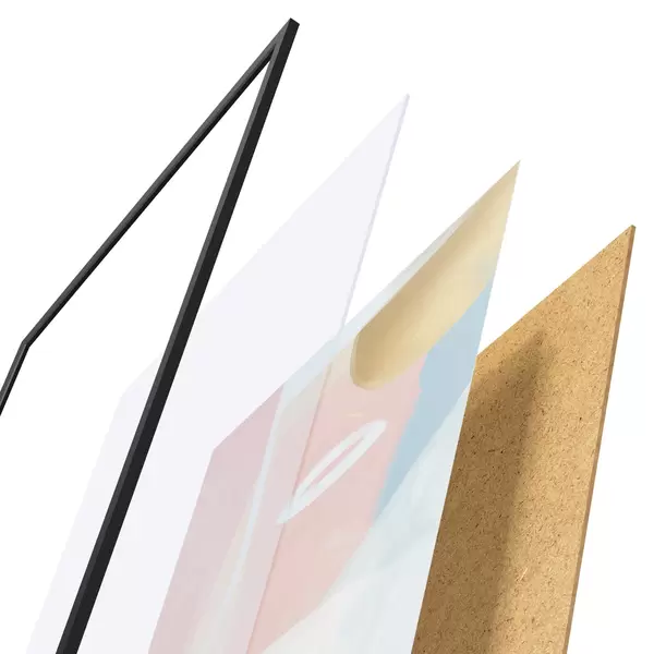 El póster consta de marco, plexiglás, imagen impresa y soporte de aglomerado. El póster puede colgarse inmediatamente en la pared gracias a los soportes de la parte posterior.