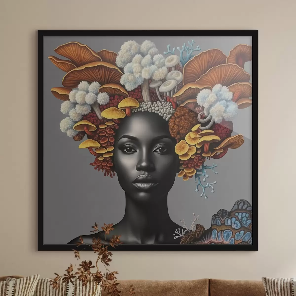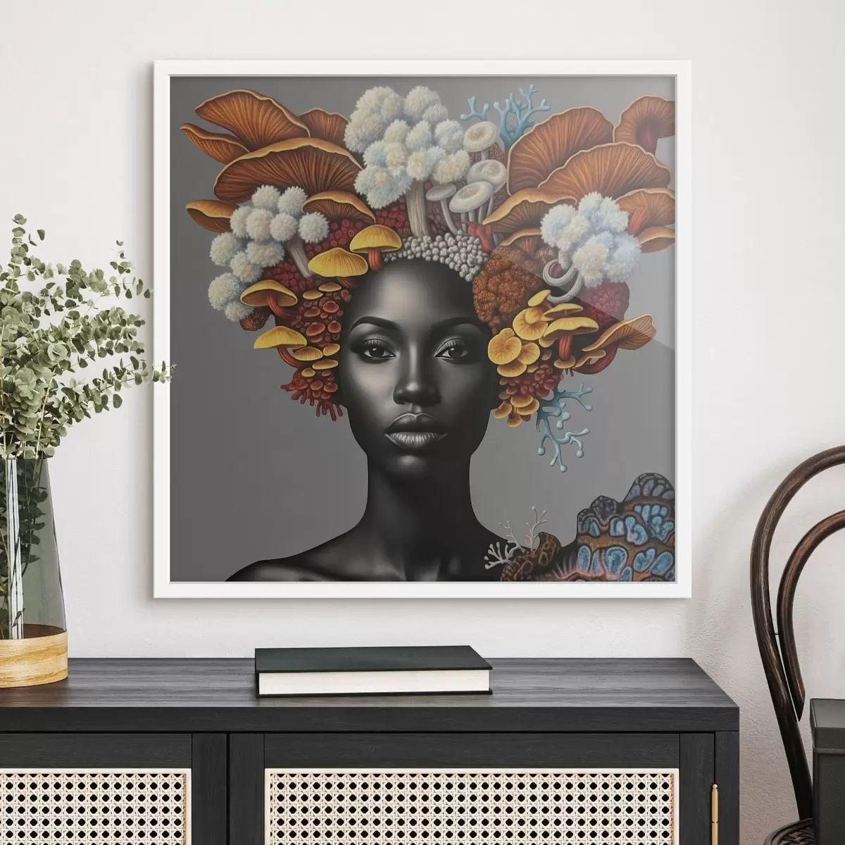Poster Retrato de una mujer con setas f47788