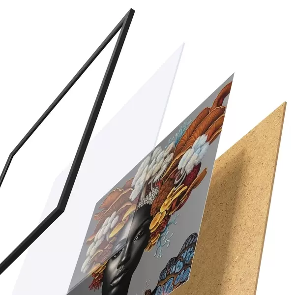 El póster consta de marco, plexiglás, imagen impresa y soporte de aglomerado. El póster puede colgarse inmediatamente en la pared gracias a los soportes de la parte posterior.