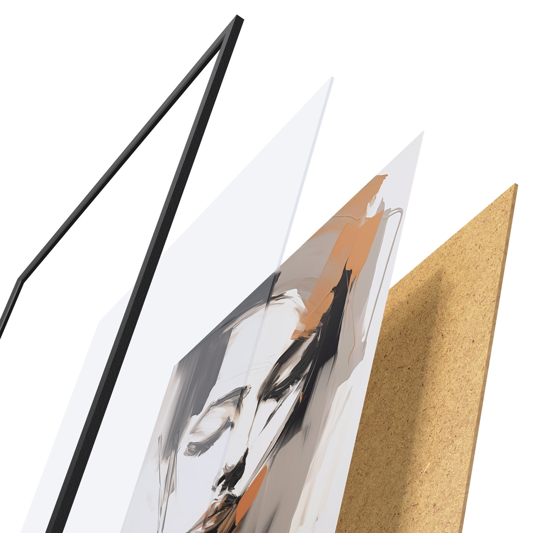 El póster consta de marco, plexiglás, imagen impresa y soporte de aglomerado. El póster puede colgarse inmediatamente en la pared gracias a los soportes de la parte posterior.