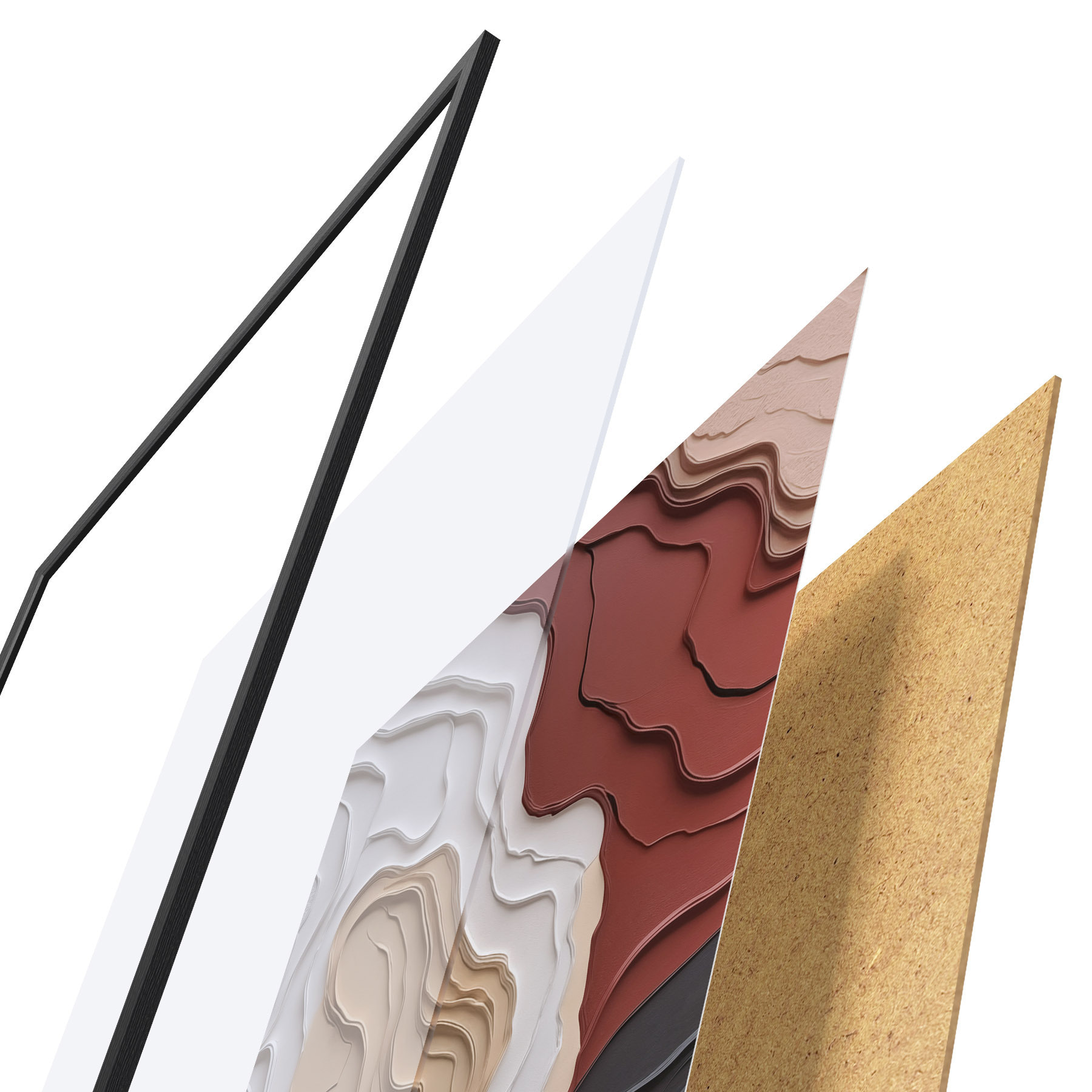 El póster consta de marco, plexiglás, imagen impresa y soporte de aglomerado. El póster puede colgarse inmediatamente en la pared gracias a los soportes de la parte posterior.