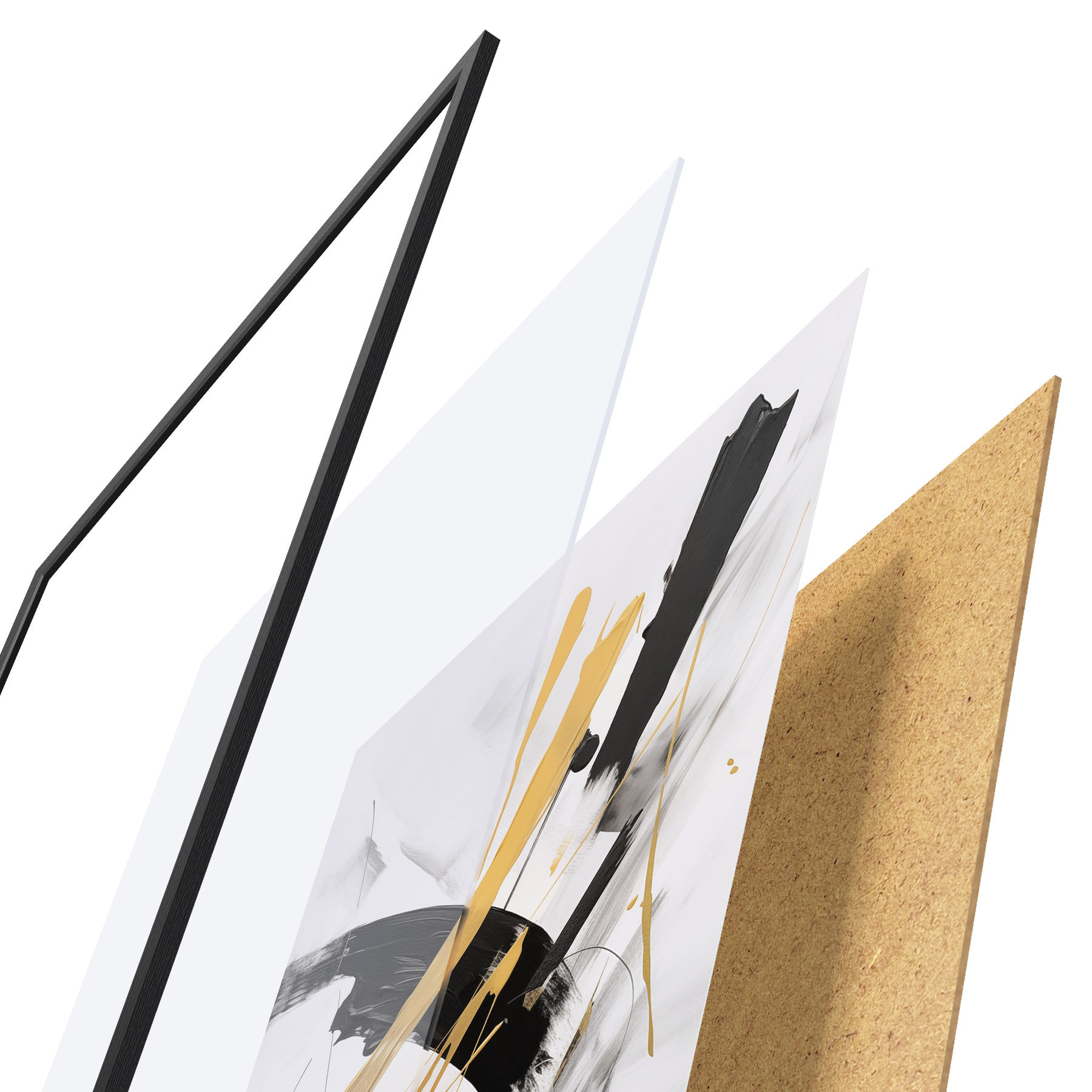 El póster consta de marco, plexiglás, imagen impresa y soporte de aglomerado. El póster puede colgarse inmediatamente en la pared gracias a los soportes de la parte posterior.