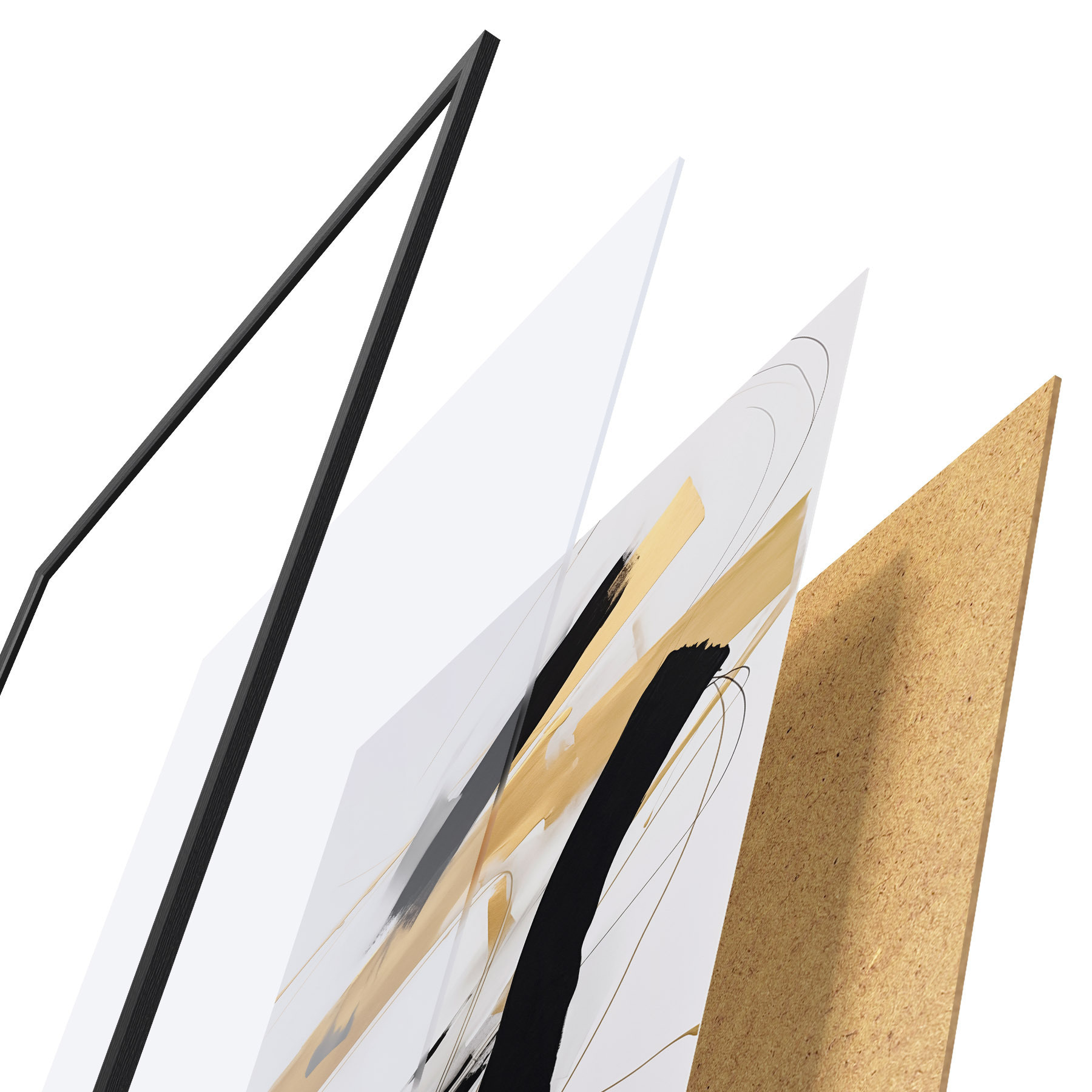 El póster consta de marco, plexiglás, imagen impresa y soporte de aglomerado. El póster puede colgarse inmediatamente en la pared gracias a los soportes de la parte posterior.
