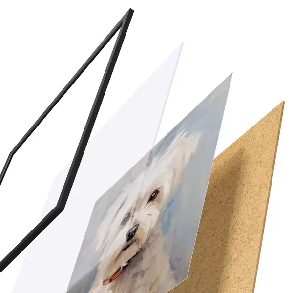 El póster consta de marco, plexiglás, imagen impresa y soporte de aglomerado. El póster puede colgarse inmediatamente en la pared gracias a los soportes de la parte posterior.