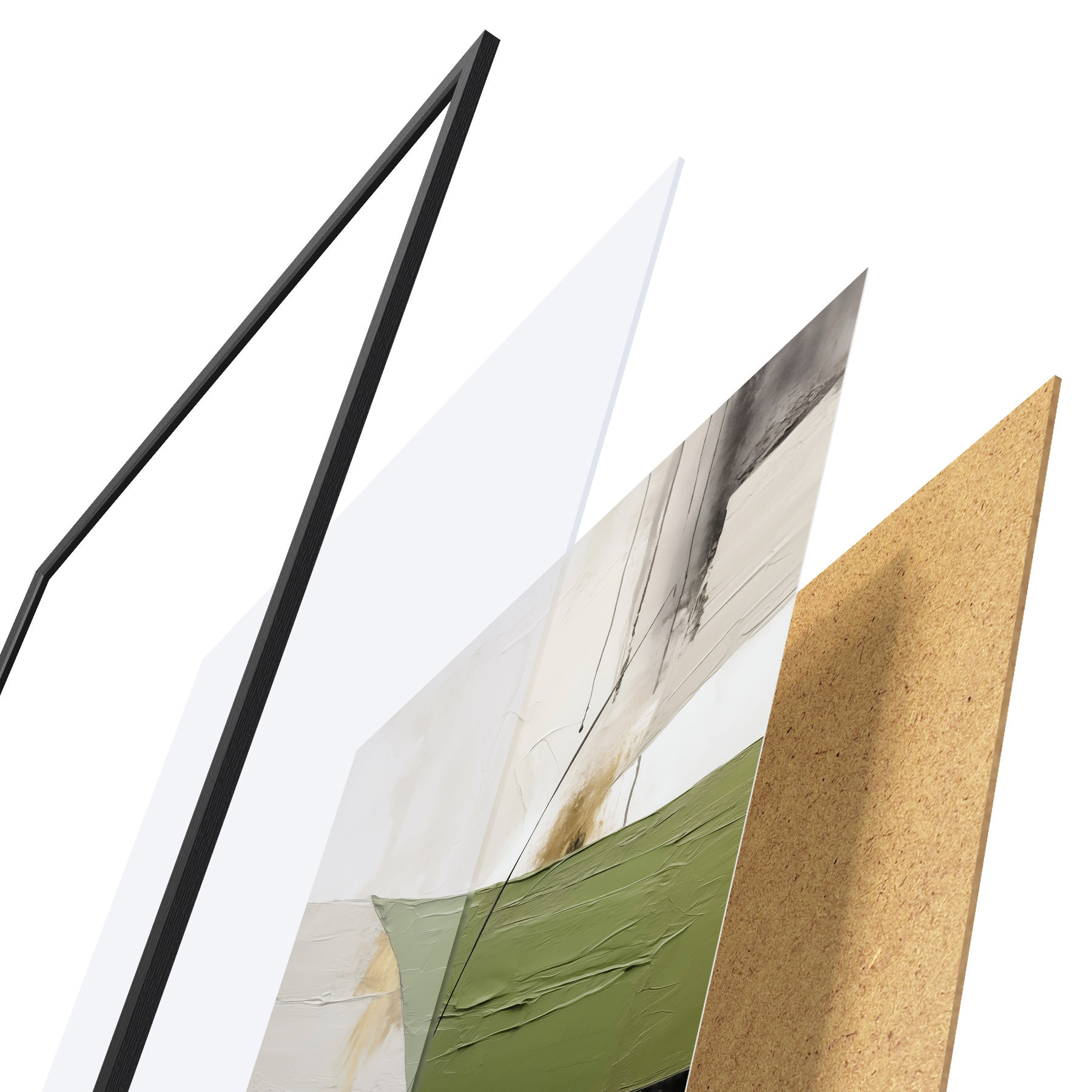 El póster consta de marco, plexiglás, imagen impresa y soporte de aglomerado. El póster puede colgarse inmediatamente en la pared gracias a los soportes de la parte posterior.