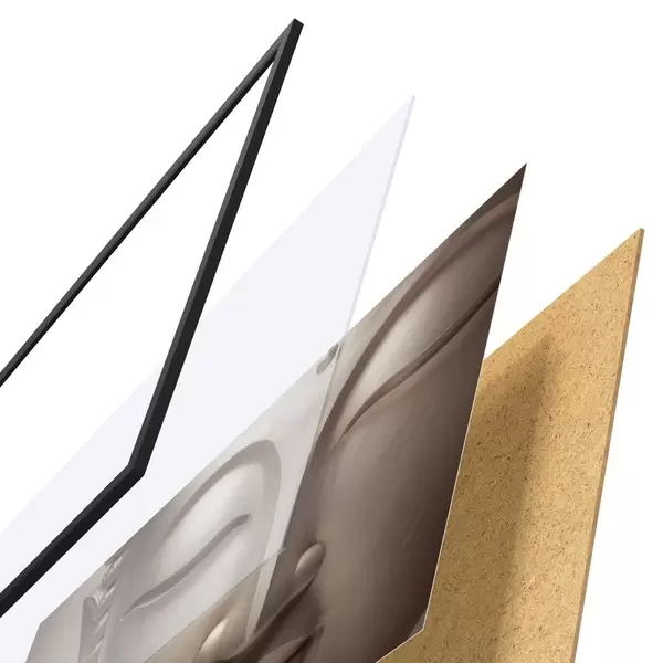 El póster consta de marco, plexiglás, imagen impresa y soporte de aglomerado. El póster puede colgarse inmediatamente en la pared gracias a los soportes de la parte posterior.