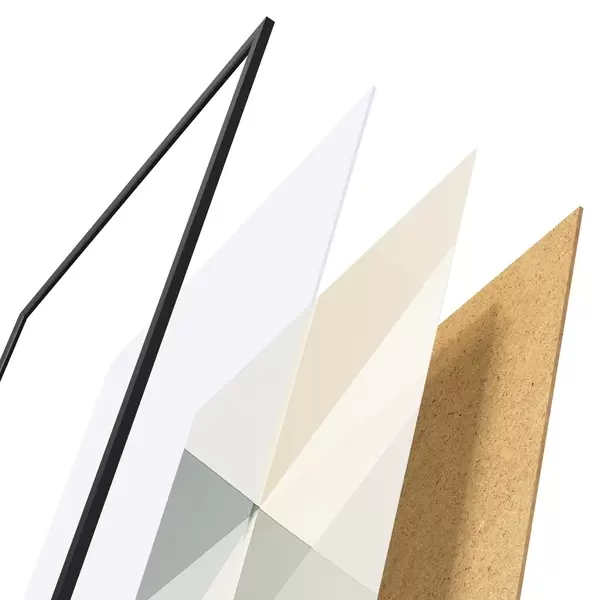 El póster consta de marco, plexiglás, imagen impresa y soporte de aglomerado. El póster puede colgarse inmediatamente en la pared gracias a los soportes de la parte posterior.