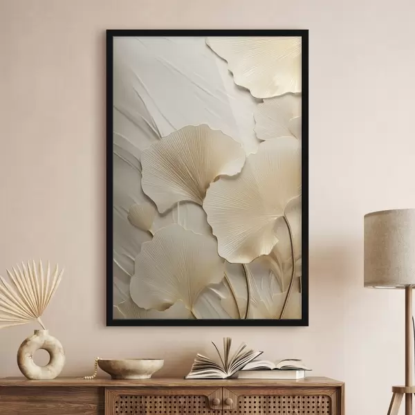 Poster Hojas abstractas de ginkgo sobre un fondo ligero y texturizado, composición elegante y abstracta. Nr f47867