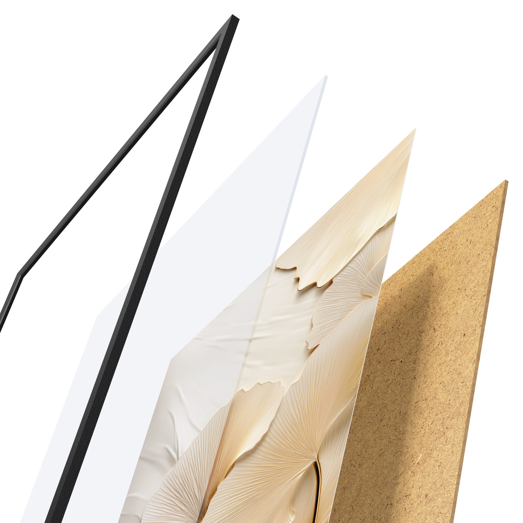 El póster consta de marco, plexiglás, imagen impresa y soporte de aglomerado. El póster puede colgarse inmediatamente en la pared gracias a los soportes de la parte posterior.
