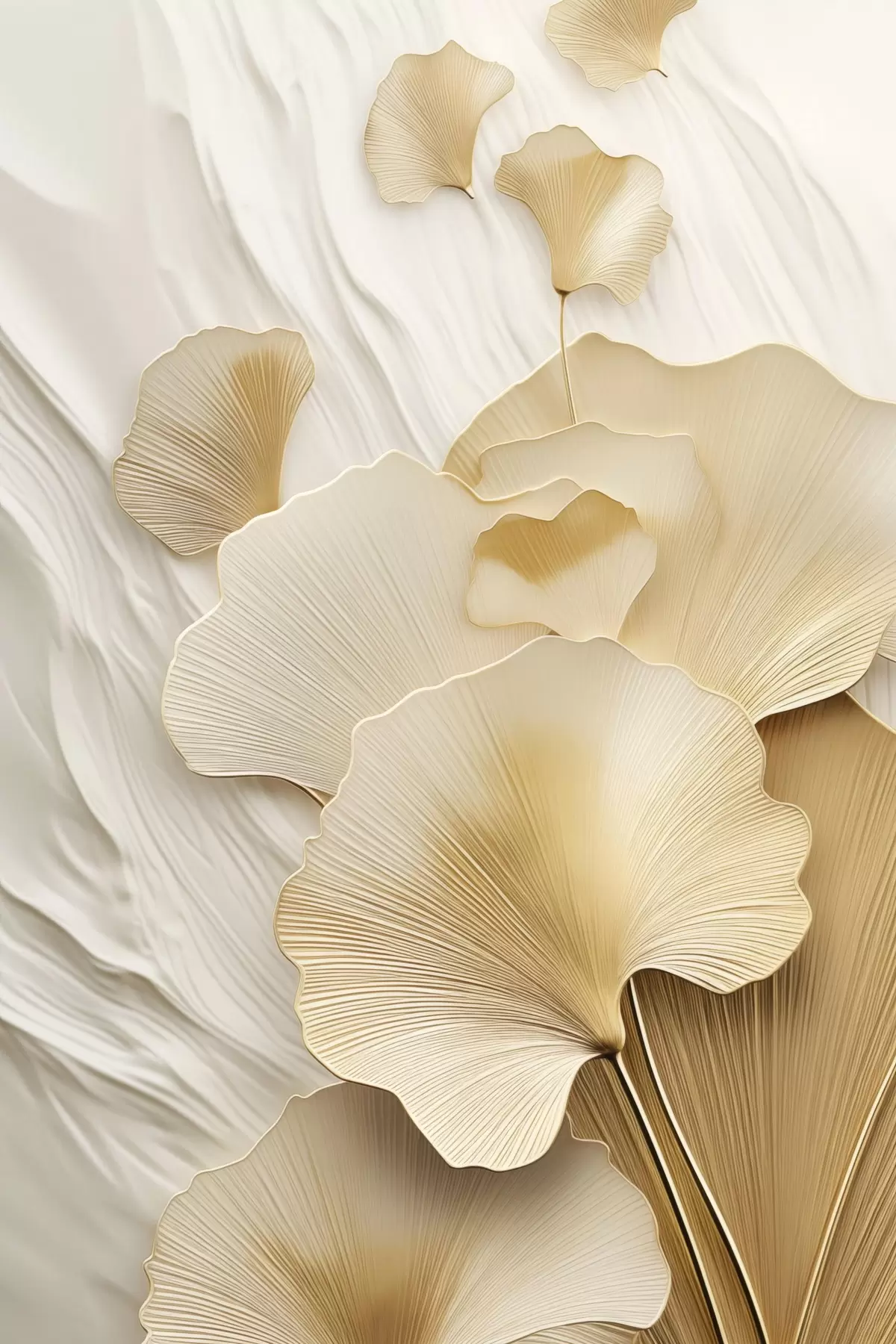 Poster Hojas abstractas de ginkgo sobre un fondo ligero y texturizado, composición elegante y abstracta. f47868