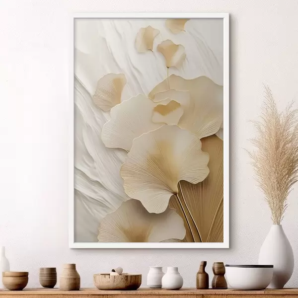 Poster Hojas abstractas de ginkgo sobre un fondo ligero y texturizado, composición elegante y abstracta. Nr f47868