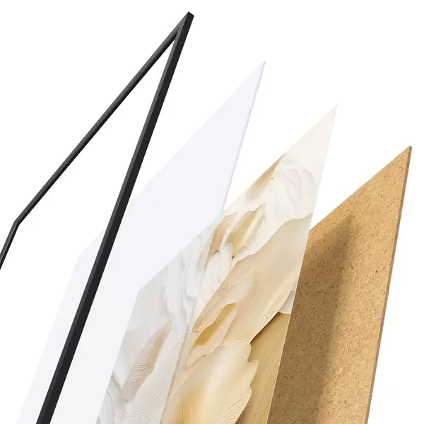 El póster consta de marco, plexiglás, imagen impresa y soporte de aglomerado. El póster puede colgarse inmediatamente en la pared gracias a los soportes de la parte posterior.