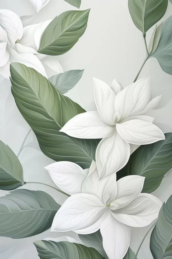 Poster Flores blancas con hojas verdes, fondo pastel Nr f47869