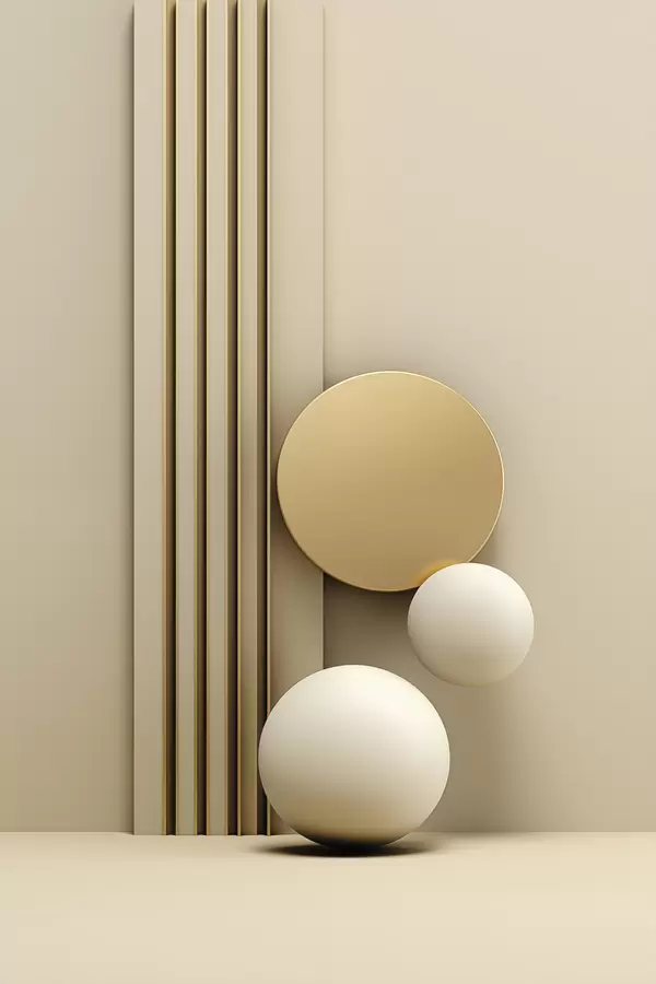 Poster Arte abstracto moderno en tonos beige con líneas verticales y esferas. f47871