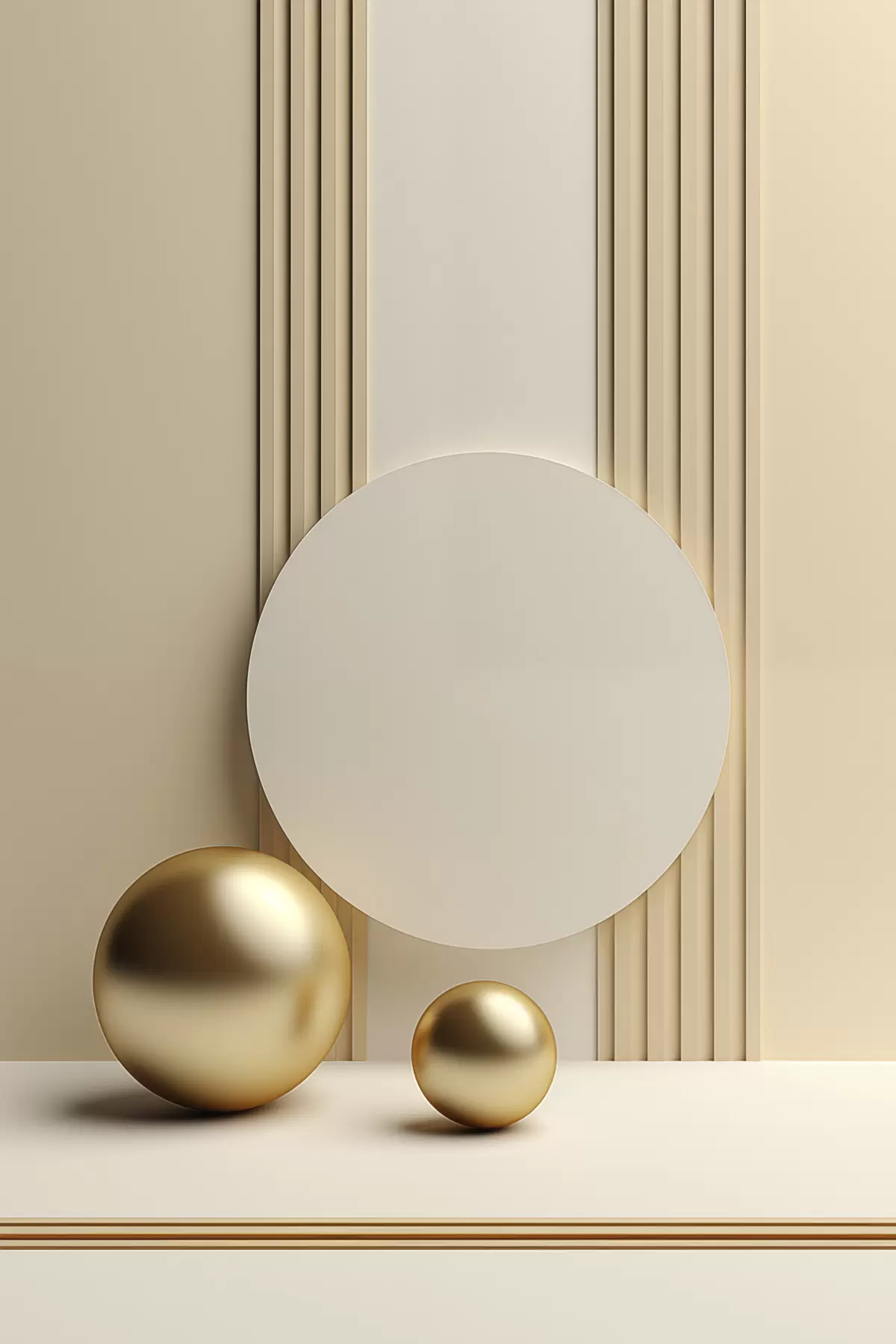 Poster Arte abstracto moderno en tonos beige con líneas verticales y esferas. f47872