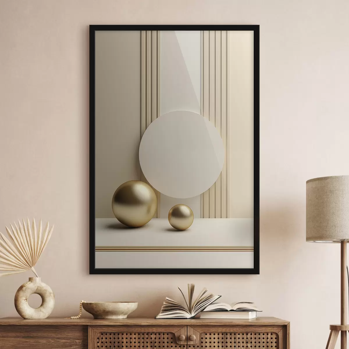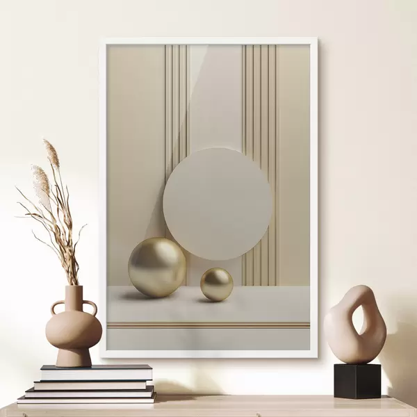 Poster Arte abstracto moderno en tonos beige con líneas verticales y esferas. Nr f47872