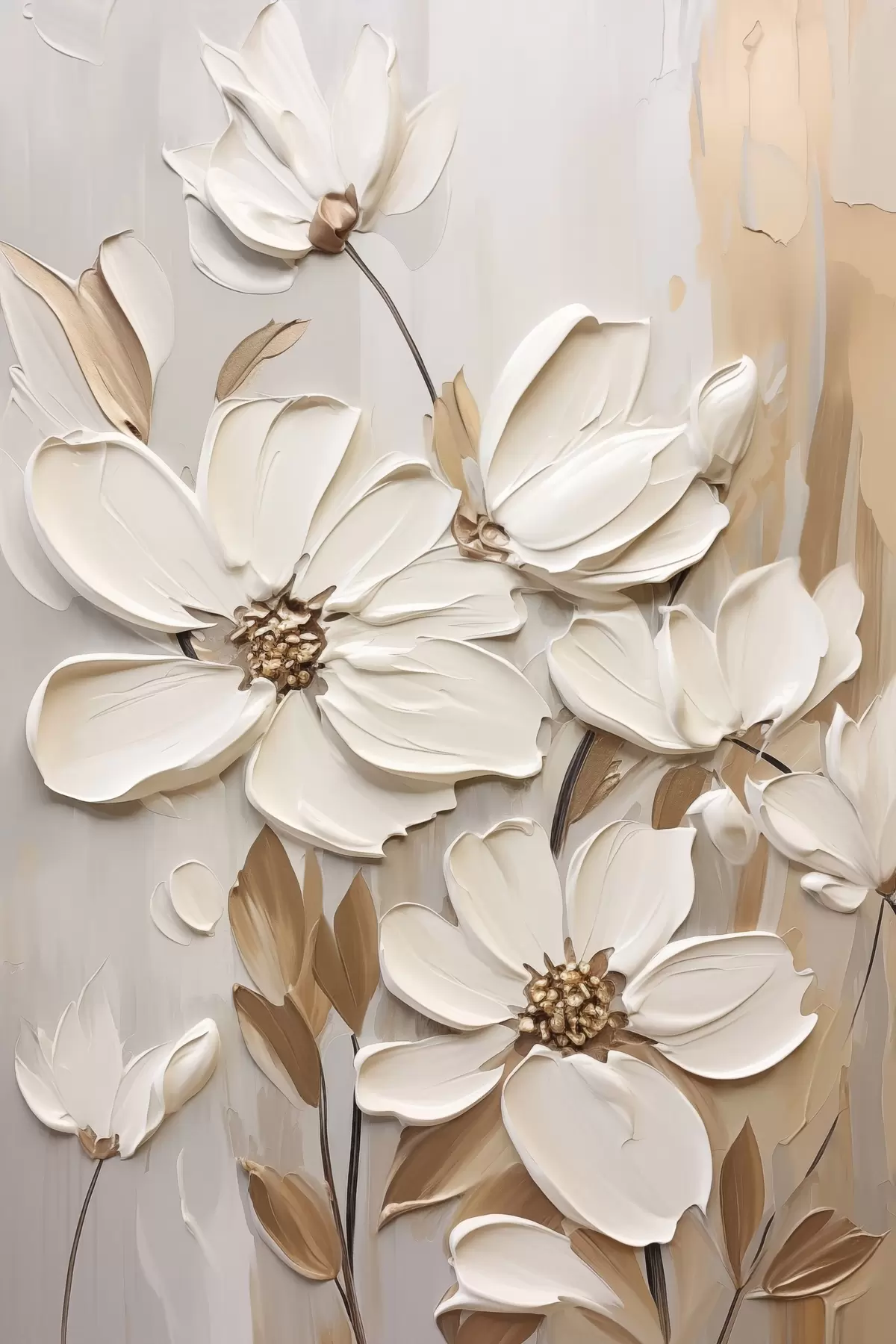 Poster Flores blancas abstractas con pétalos texturizados, sobre un fondo neutro con sutiles pinceladas imitativas. Nr f47873