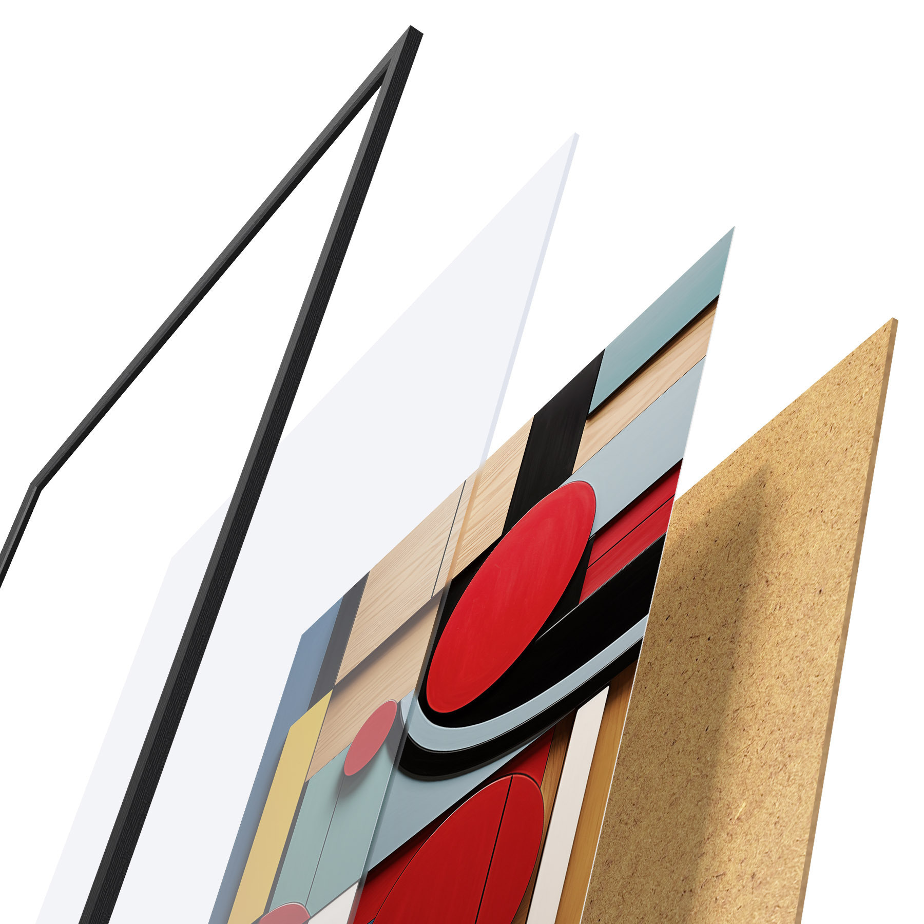 El póster consta de marco, plexiglás, imagen impresa y soporte de aglomerado. El póster puede colgarse inmediatamente en la pared gracias a los soportes de la parte posterior.