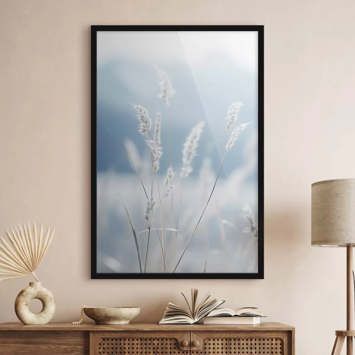Poster Hierba blanca y esponjosa contra un suave cielo azul, con una profundidad de campo reducida. f47880