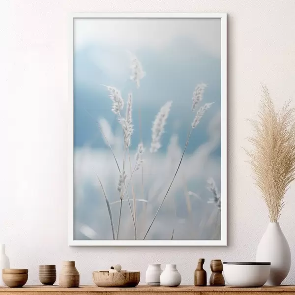 Poster Hierba blanca y esponjosa contra un suave cielo azul, con una profundidad de campo reducida. Nr f47880