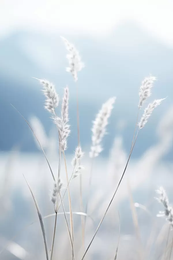 Poster Hierba blanca y esponjosa contra un suave cielo azul, con una profundidad de campo reducida. f47880