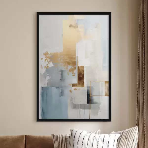 Poster Formas geométricas abstractas con colores amarillo, azul y blanco, composición texturizada y minimalista. f47881