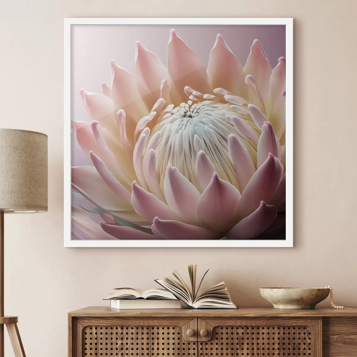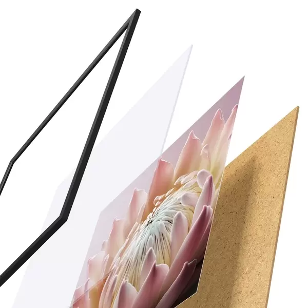 El póster consta de marco, plexiglás, imagen impresa y soporte de aglomerado. El póster puede colgarse inmediatamente en la pared gracias a los soportes de la parte posterior.