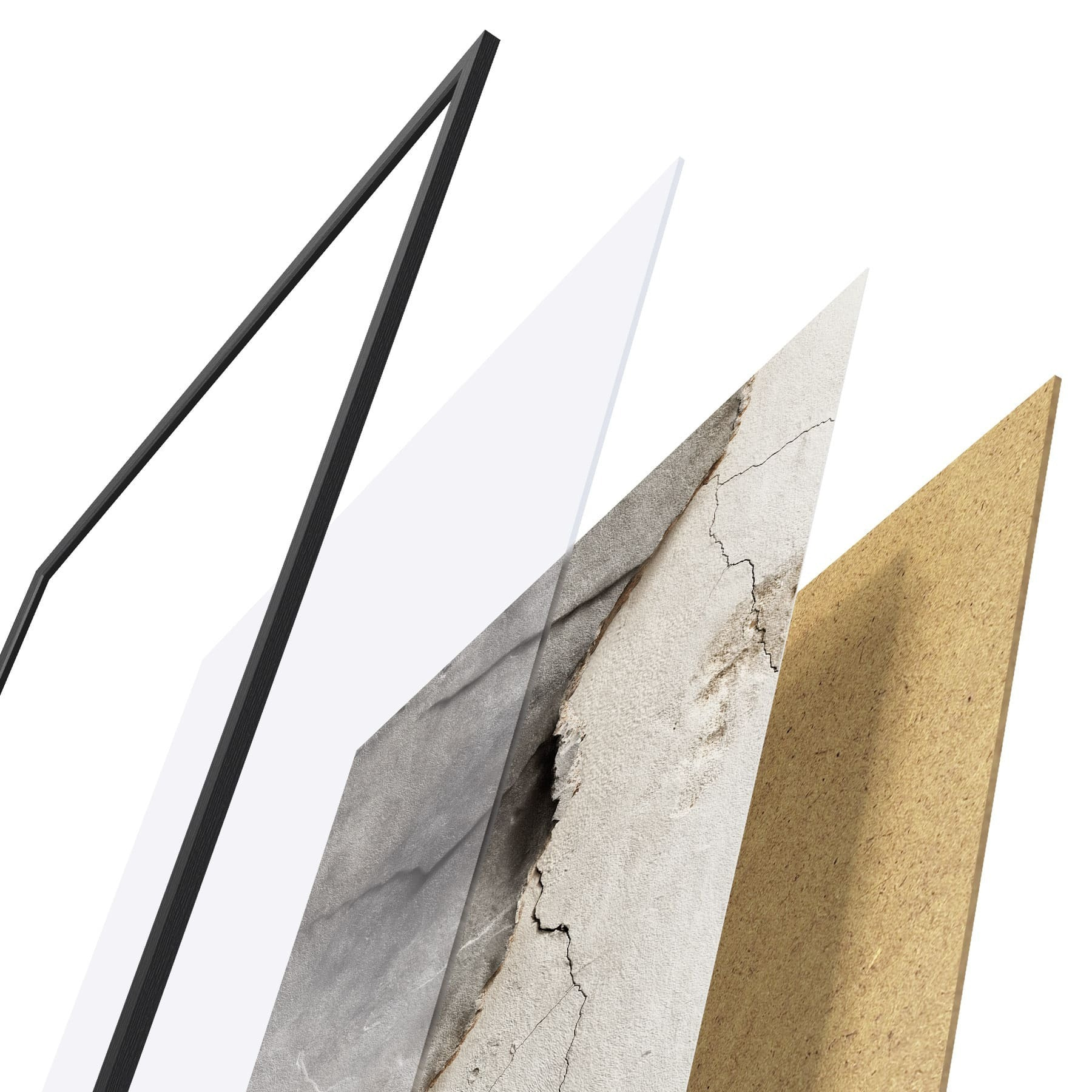 El póster consta de marco, plexiglás, imagen impresa y soporte de aglomerado. El póster puede colgarse inmediatamente en la pared gracias a los soportes de la parte posterior.
