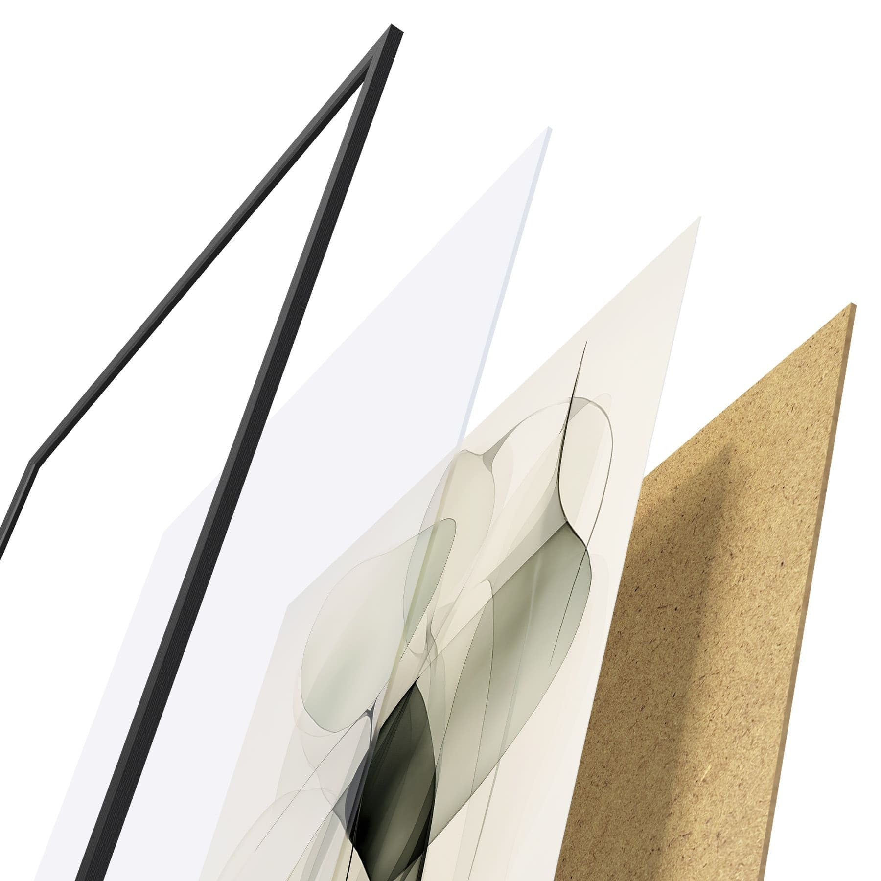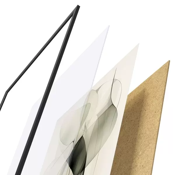 El póster consta de marco, plexiglás, imagen impresa y soporte de aglomerado. El póster puede colgarse inmediatamente en la pared gracias a los soportes de la parte posterior.
