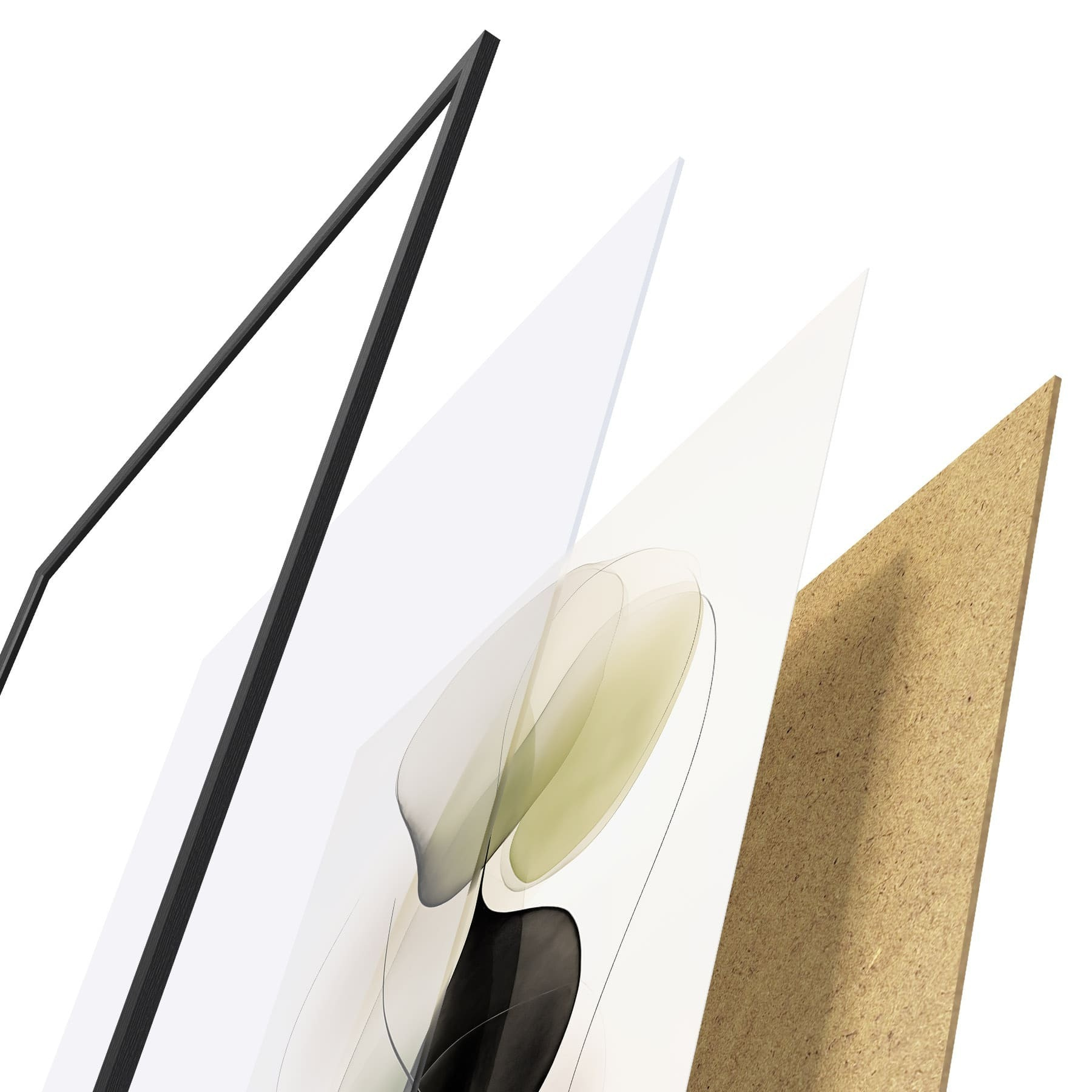 El póster consta de marco, plexiglás, imagen impresa y soporte de aglomerado. El póster puede colgarse inmediatamente en la pared gracias a los soportes de la parte posterior.