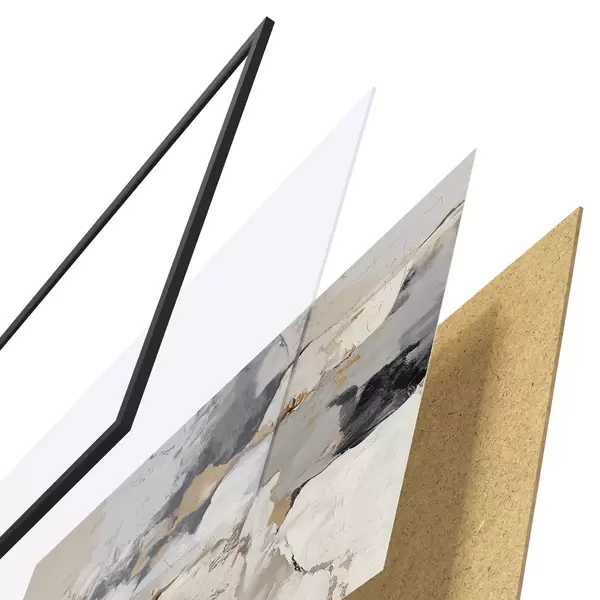 El póster consta de marco, plexiglás, imagen impresa y soporte de aglomerado. El póster puede colgarse inmediatamente en la pared gracias a los soportes de la parte posterior.