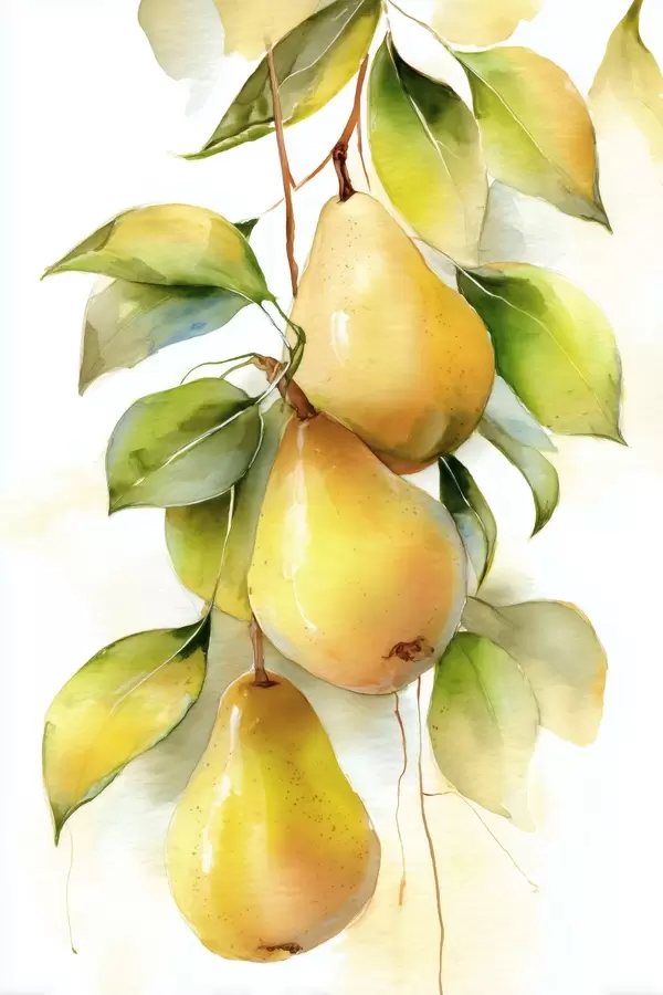 Poster Jugosas peras amarillas en estilo acuarela Nr f47931