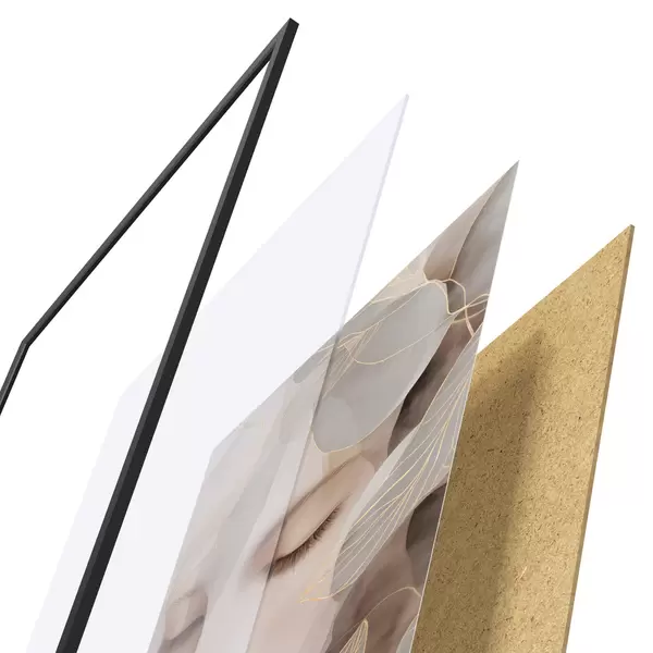 El póster consta de marco, plexiglás, imagen impresa y soporte de aglomerado. El póster puede colgarse inmediatamente en la pared gracias a los soportes de la parte posterior.